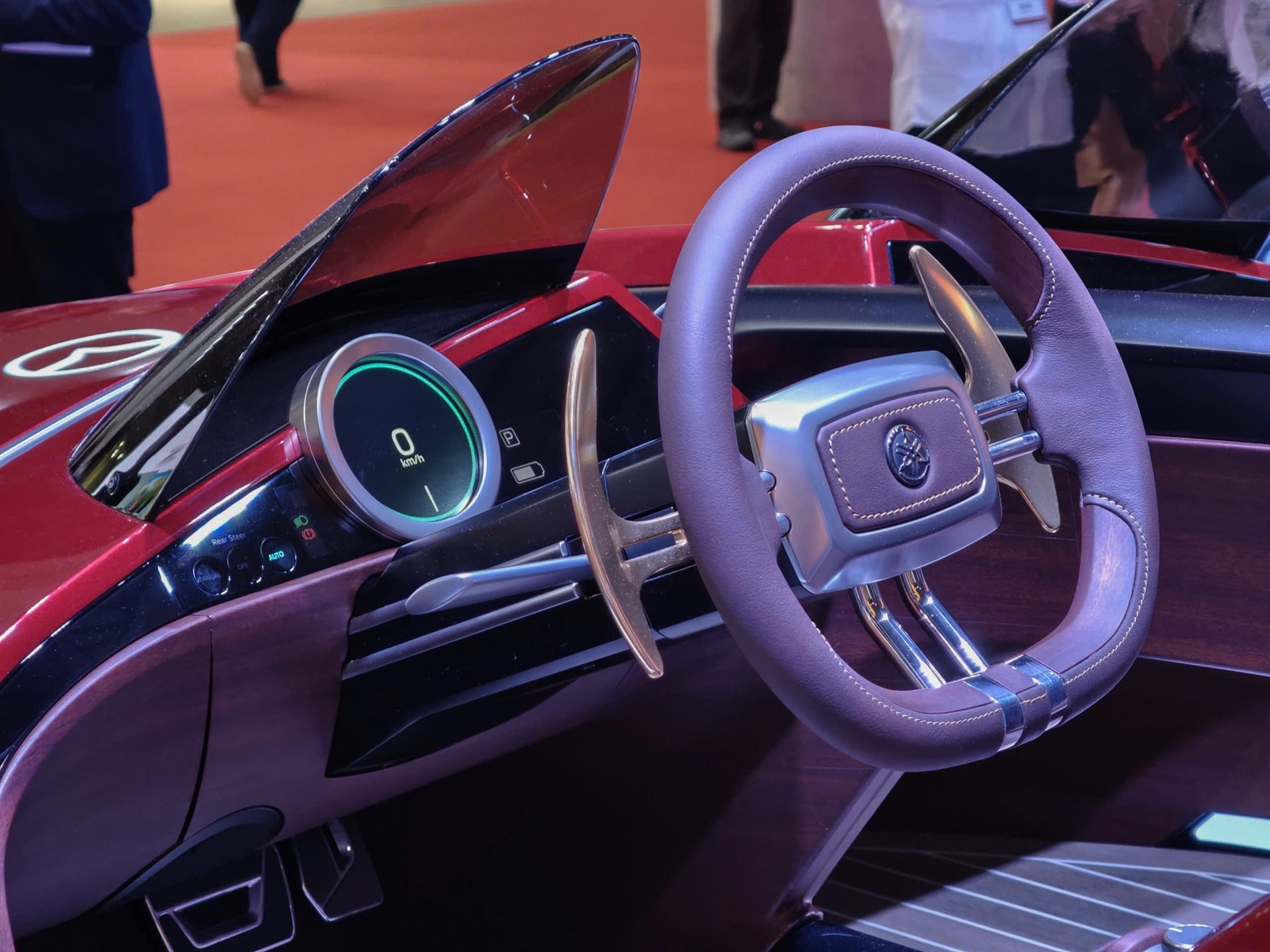 Bệ điều khiển trung tâm được bố trí các phím bấm và núm xoay vật lý để lựa chọn chế độ vận hành, mang lại cảm giác điều khiển trực quan. Toàn bộ không gian được hoàn thiện với bộ ghế ngồi thể thao bọc vật liệu màu đỏ thẫm, nhấn mạnh phong cách hiệu suất cao của mẫu concept.