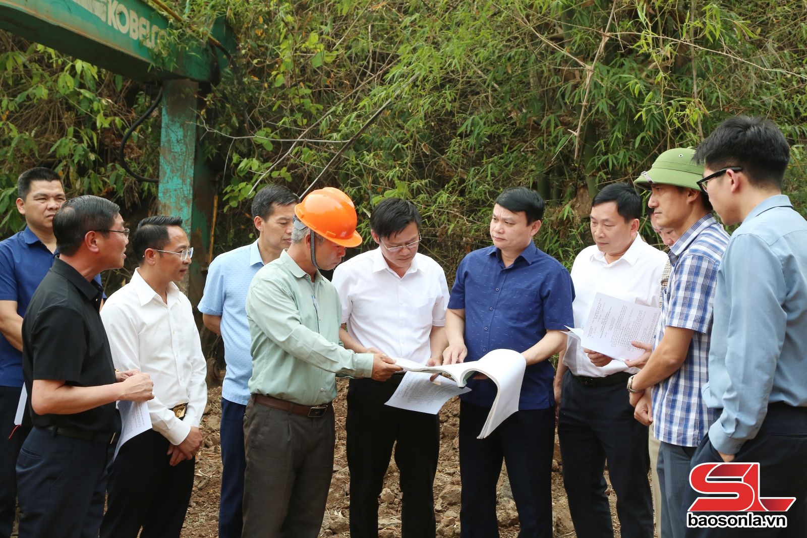 Đồng chí Đặng Ngọc Hậu, Phó Chủ tịch UBND tỉnh cùng đoàn công tác kiểm tra tiến độ triển khai dự án công trình đường giao thông bản Nhôm - Hua Mi, xã Yên Châu.