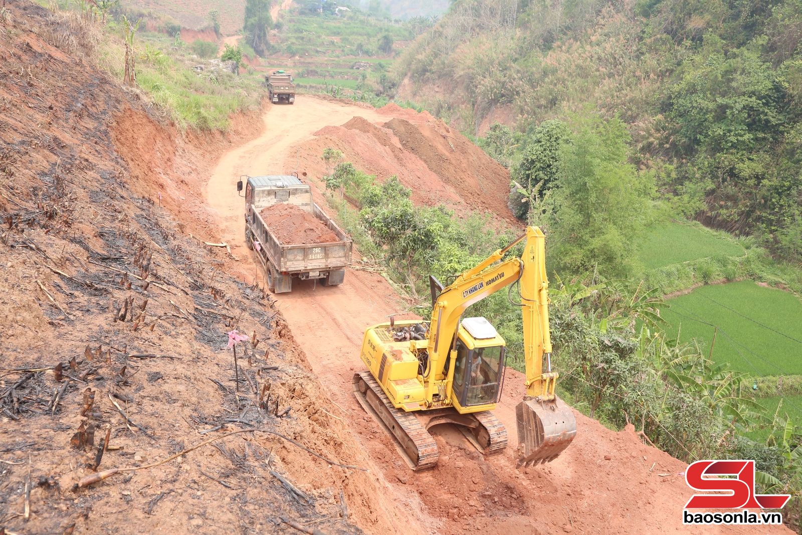 Thi công tuyến đường bản Nhôm - Hua Mi, xã Yên Châu.