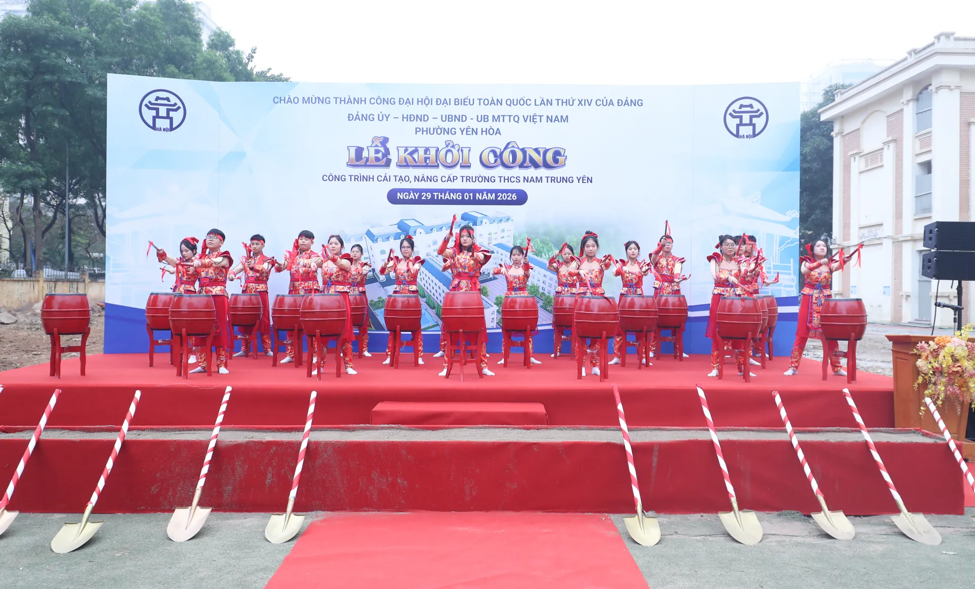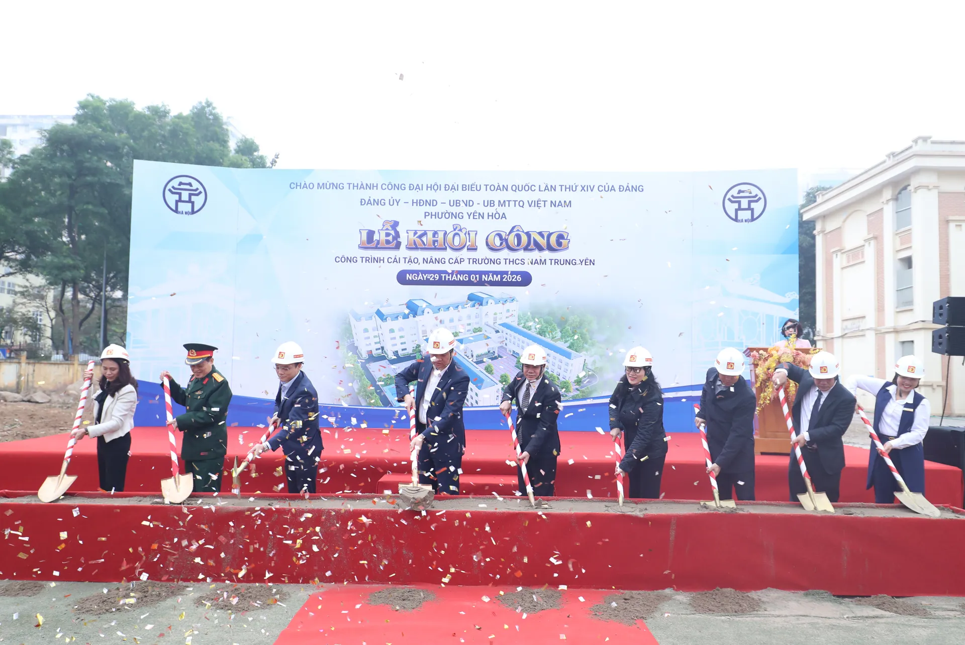 Báo cáo tại buổi Lễ khởi công, Giám đốc Ban Quản lý dự án đầu tư hạ tầng phường Yên Hòa Bùi Ngọc Diệp cho biết, dự án xây dựng công trình cải tạo, nâng cấp trường THCS Nam Trung Yên đã được phê duyệt chủ trương đầu tư và điều chỉnh chủ trương theo các nghị quyết của HĐND quận Cầu Giấy và được phê duyệt dự án tại Quyết định số 807/QĐ-UBND ngày 18/4/2025, sau khi thực hiện mô hình chính quyền địa phương 2 cấp, dự án được TP giao UBND phường Yên Hòa làm chủ đầu tư tiếp tục triển khai.