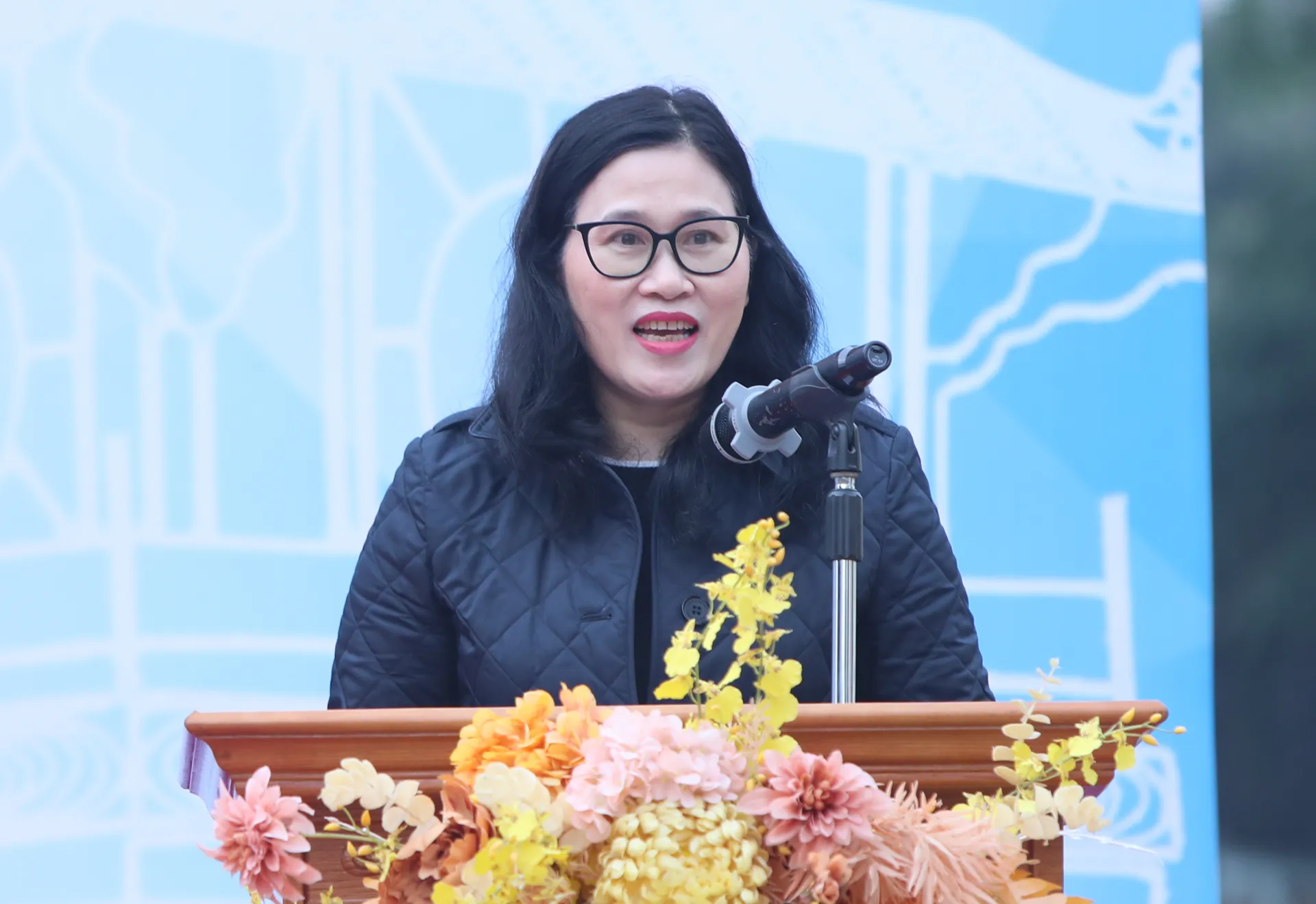 Chủ tịch UBND phường Yên Hòa Trịnh Thị Dung phát biểu tại buổi lễ.