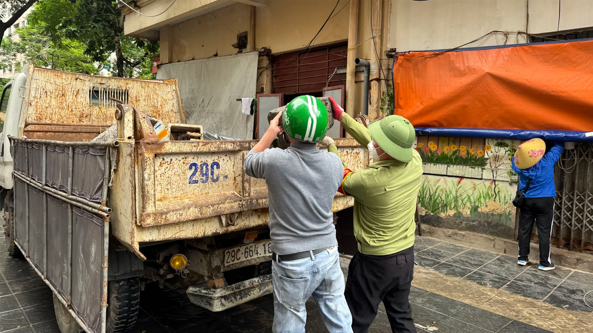 Lực lượng chức năng phường Yên Hòa tăng cường công tác bảo đảm vệ sinh môi trường. Ảnh: Vân Nhi