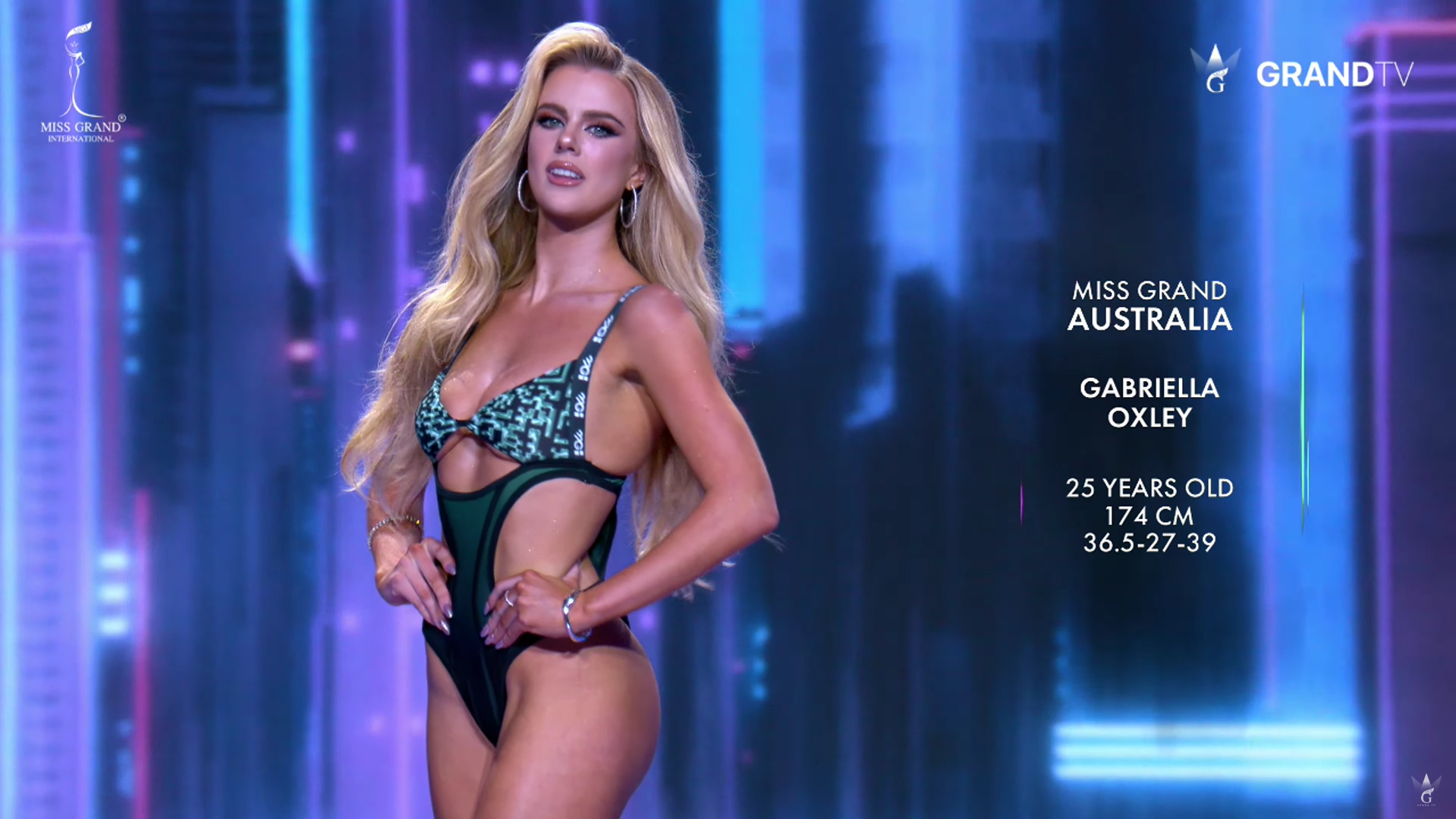 Đại diện Úc – Gabriella Oxley ghi điểm với hình thể khỏe khoắn kết hợp cùng những động tác khiêu vũ ấn tượng.