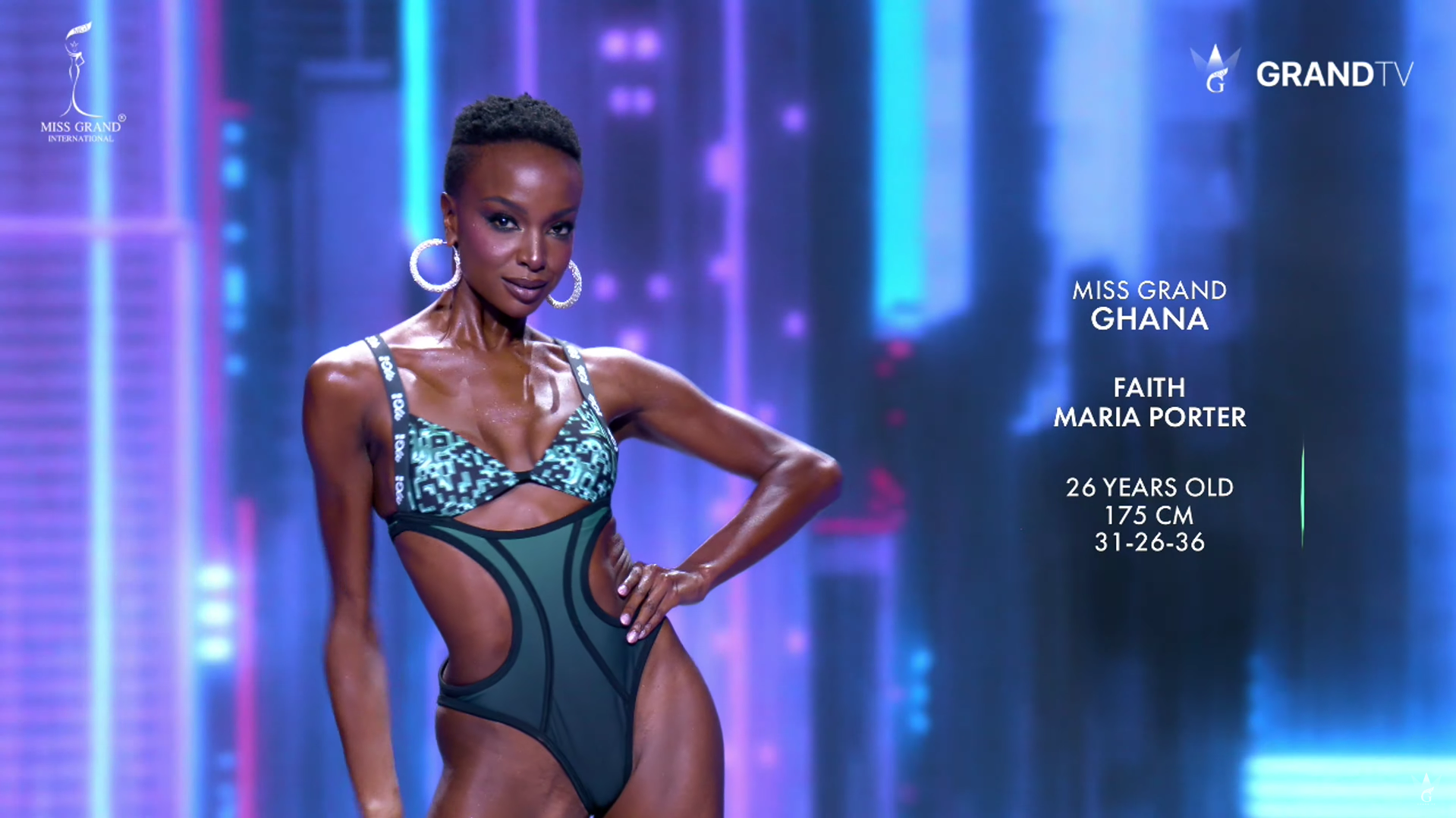 Hoa hậu Ghana – Faith Maria Porter nhận được sự cổ vũ nồng nhiệt với phần thi đầy năng lượng và hiện là ứng viên sáng giá cho vương miện năm nay.