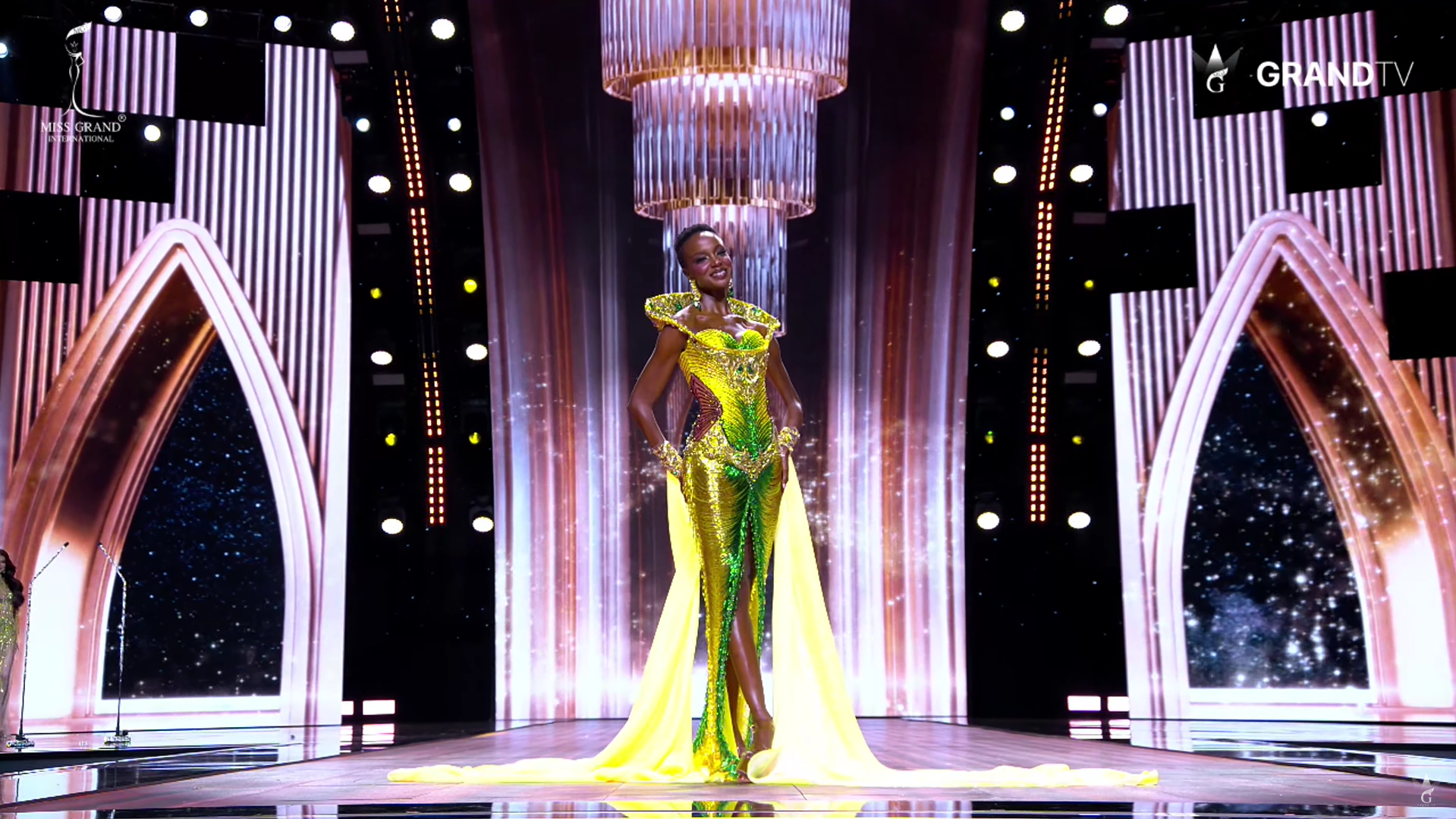 Faith Maria Porter (Ghana) tiếp tục ghi điểm với trang phục đính kết lộng lẫy.
