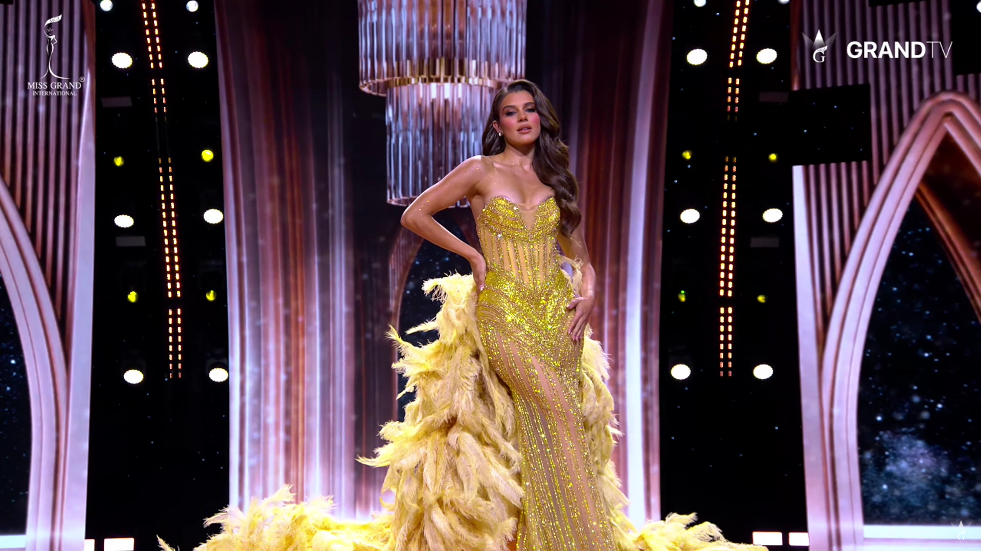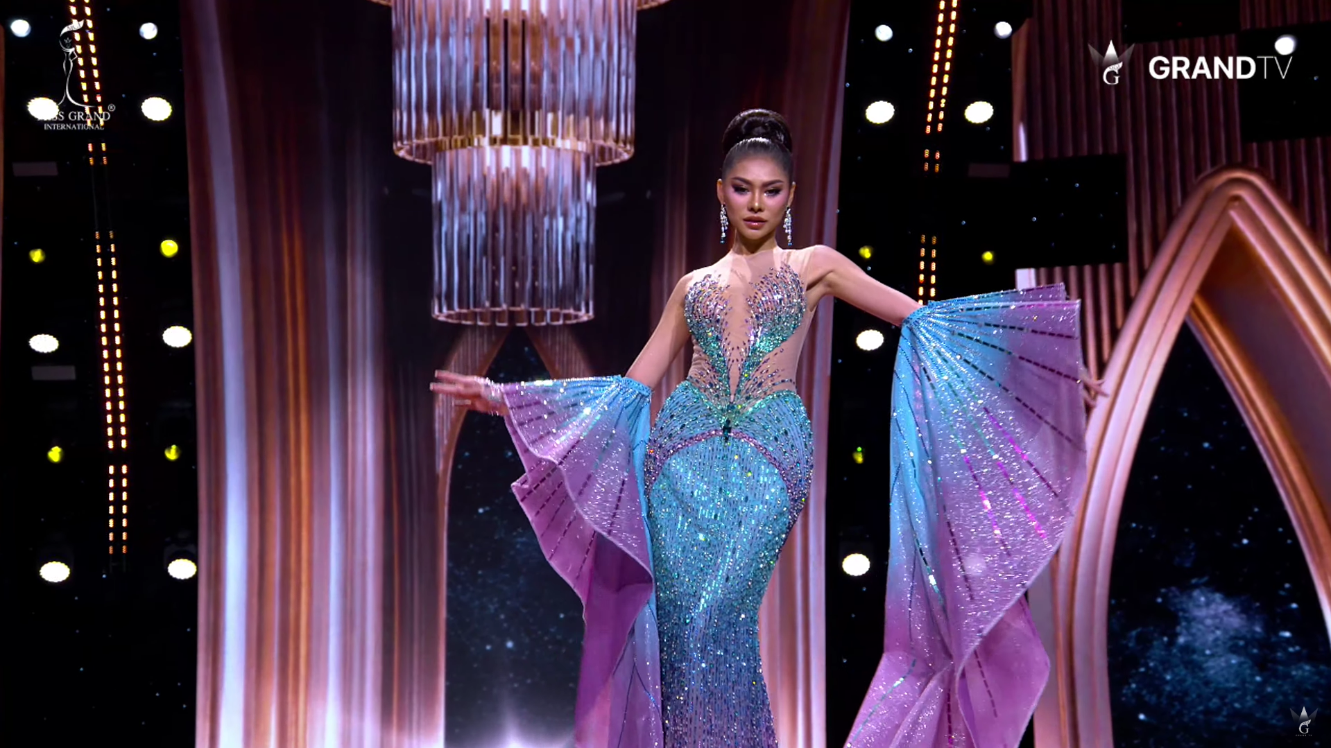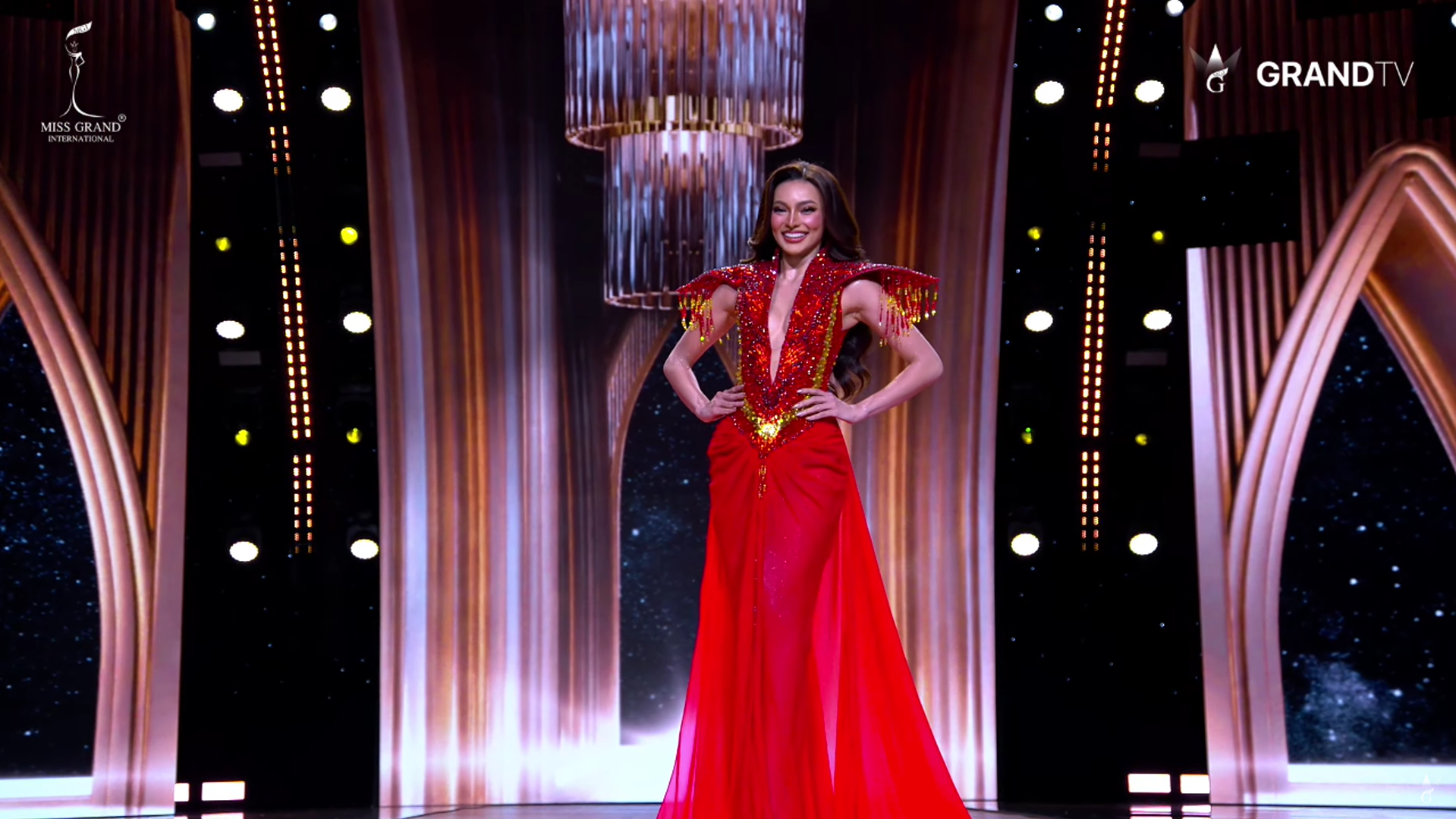 Tối 15/10, bán kết Miss Grand International 2025 (Hoa hậu Hòa bình Quốc tế) diễn ra tại Bangkok (Thái Lan) với 2 phần thi chính là trình diễn trang phục áo tắm và dạ hội. Trên sân khấu được dàn dựng hoành tráng, lấy cảm hứng từ công nghệ AI, 77 thí sinh mở màn bằng màn trình diễn áo tắm đầy năng lượng.