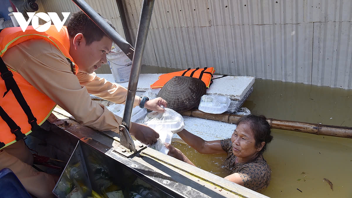Đội Cảnh sát đường thủy số 1 hỗ trợ tiếp tế thức ăn, nước uống cho người dân trong vùng lũ