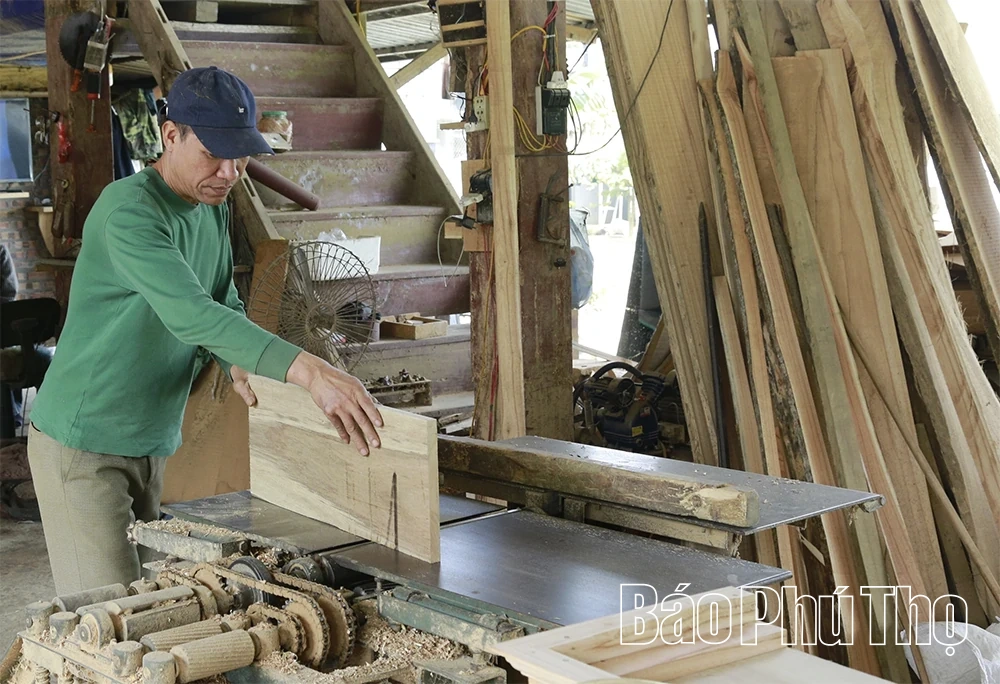 Tận dụng nguồn nguyên liệu dồi dào sẵn có của địa phương, ông Đinh Văn Phê ở khu Mố mở xưởng chế tạo đồ mộc dân dụng, mang lại thu nhập ổn định.