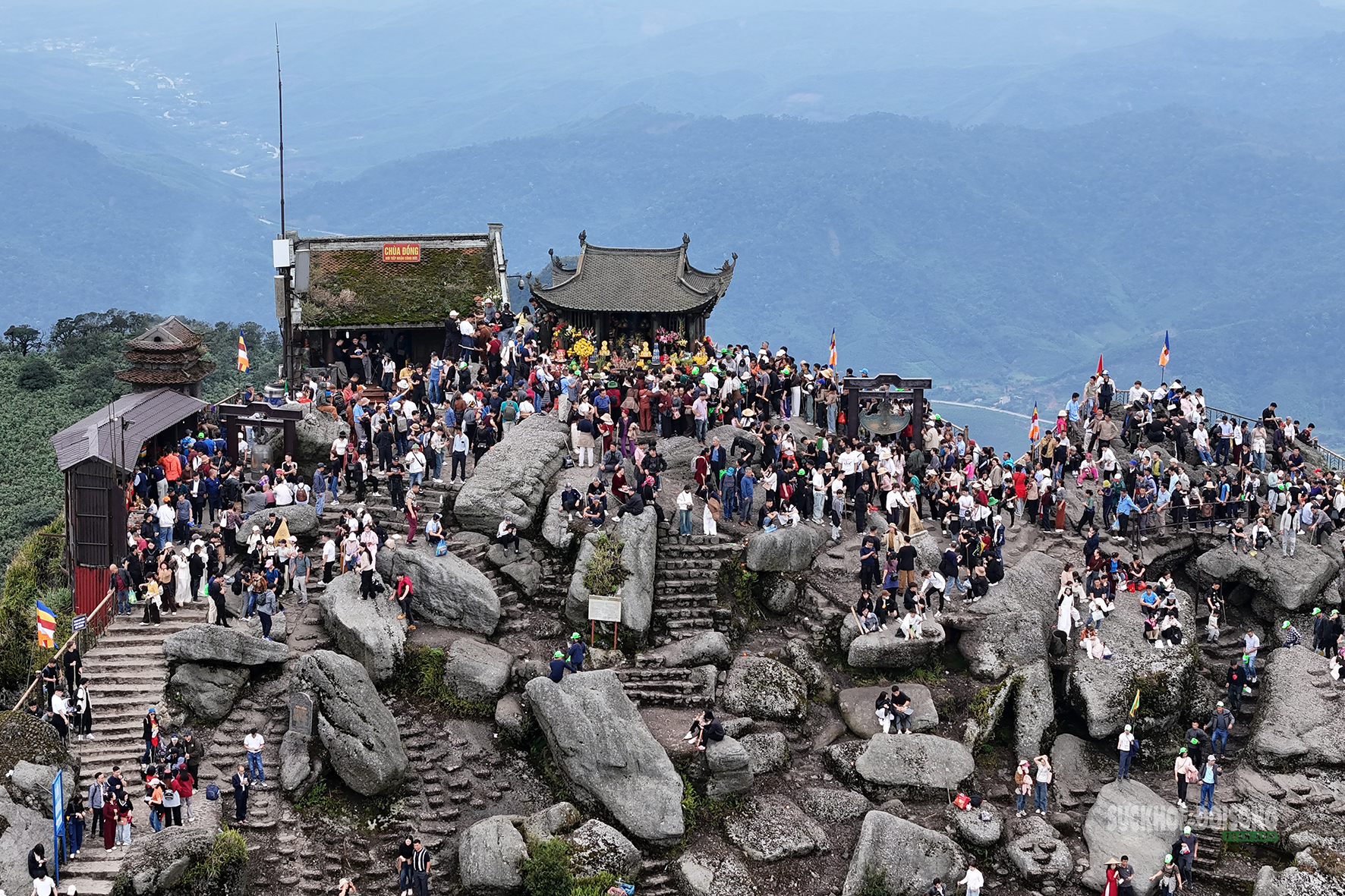 Dòng người hành hương đông kín khu vực Chùa Đồng trên đỉnh Yên Tử.