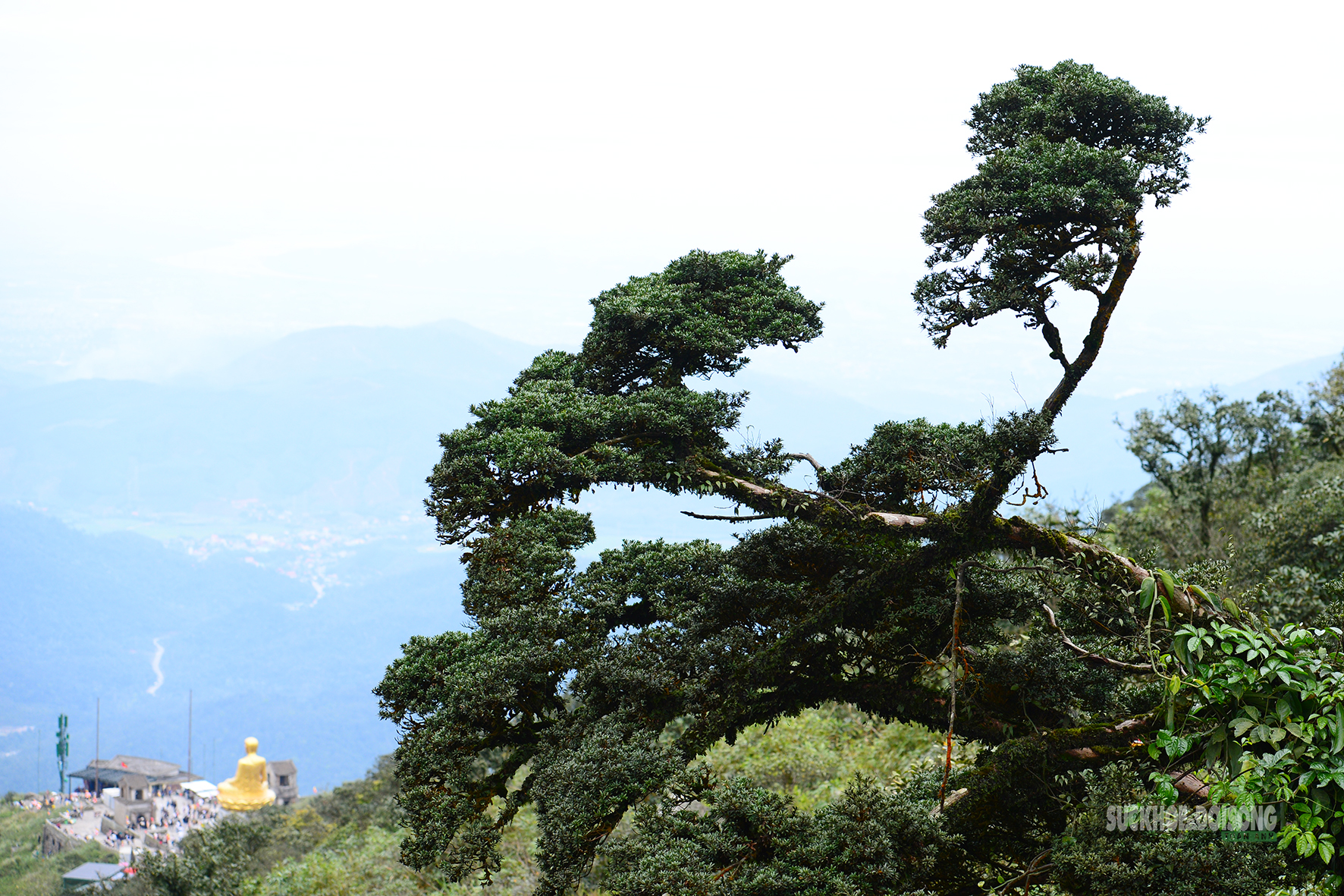 Cây tùng cổ tạo điểm nhấn giữa không gian hùng vĩ của Yên Tử.