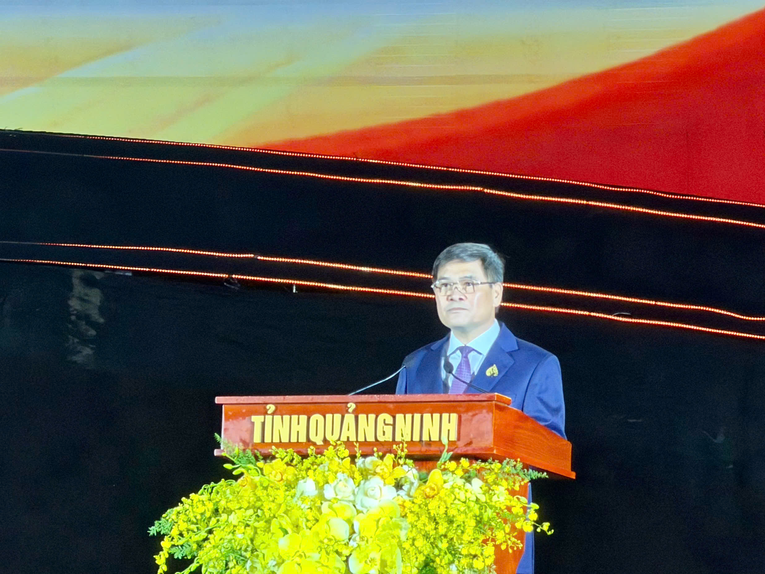 Ông Bùi Văn Khắng, Chủ tịch UBND tỉnh Quảng Ninh, phát biểu tại buổi lễ.