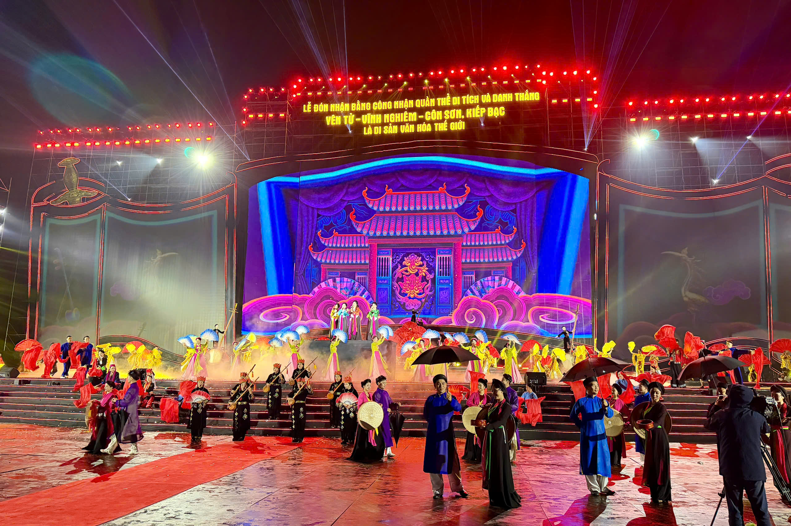 Chương trình ca nhạc tại lễ đón nhận Bằng UNESCO ghi danh Quần thể Di tích và Danh thắng Yên Tử - Vĩnh Nghiêm - Côn Sơn, Kiếp Bạc là Di sản Văn hóa Thế giới.