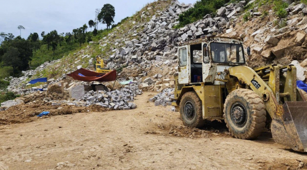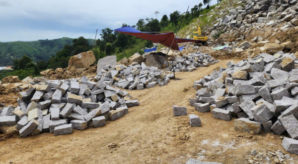 Ước tính có khoảng 5.000 viên đá chẻ và phương tiện, máy móc tại hiện trường.