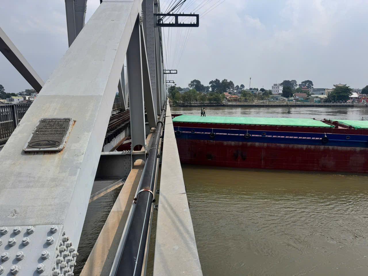 Hình ảnh sà lan đâm vào cầu Ghềnh. Ảnh: H.NĂM