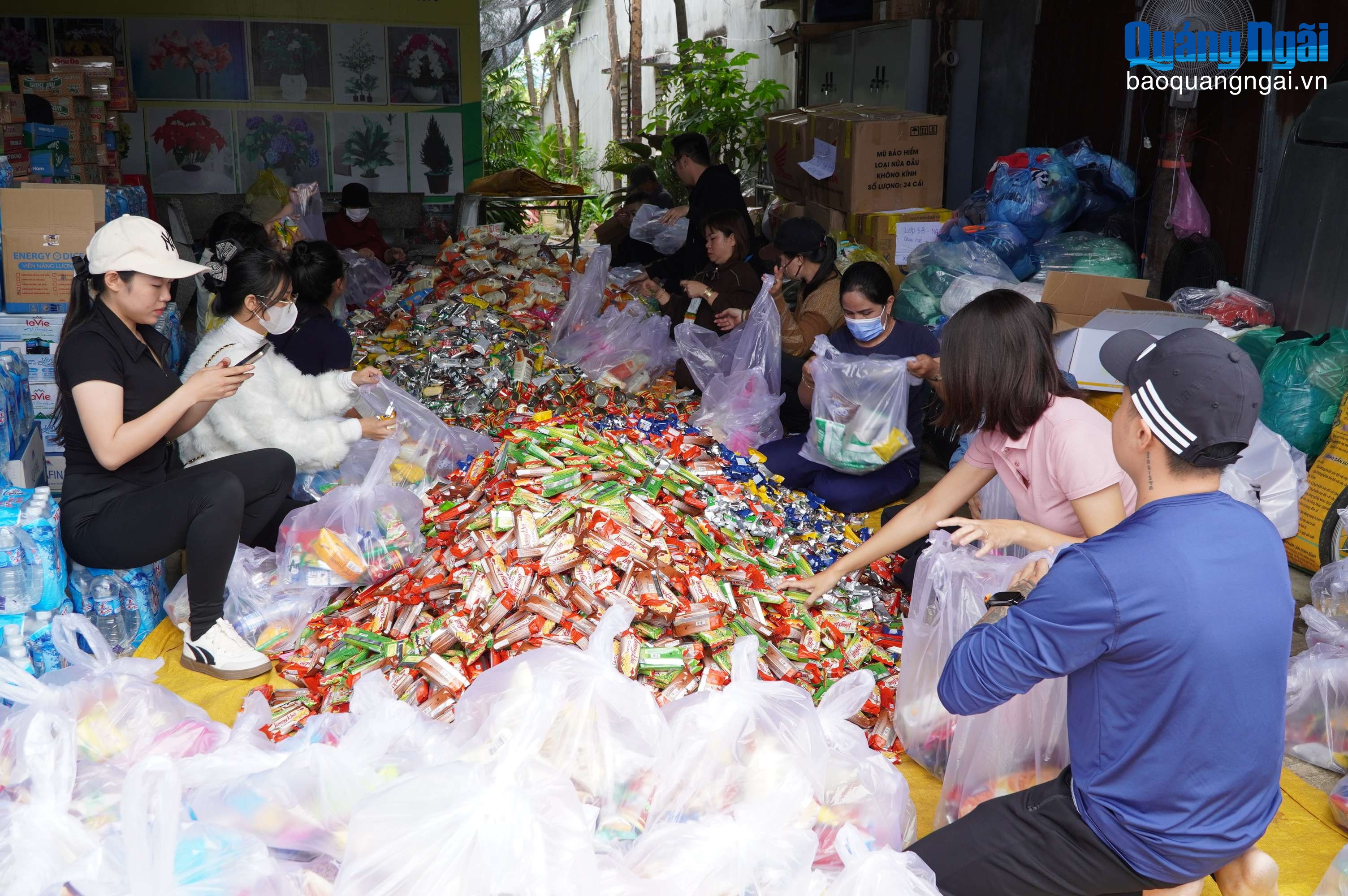 Các tình nguyện viên cùng nhau đóng gói các nhu yếu phẩm.