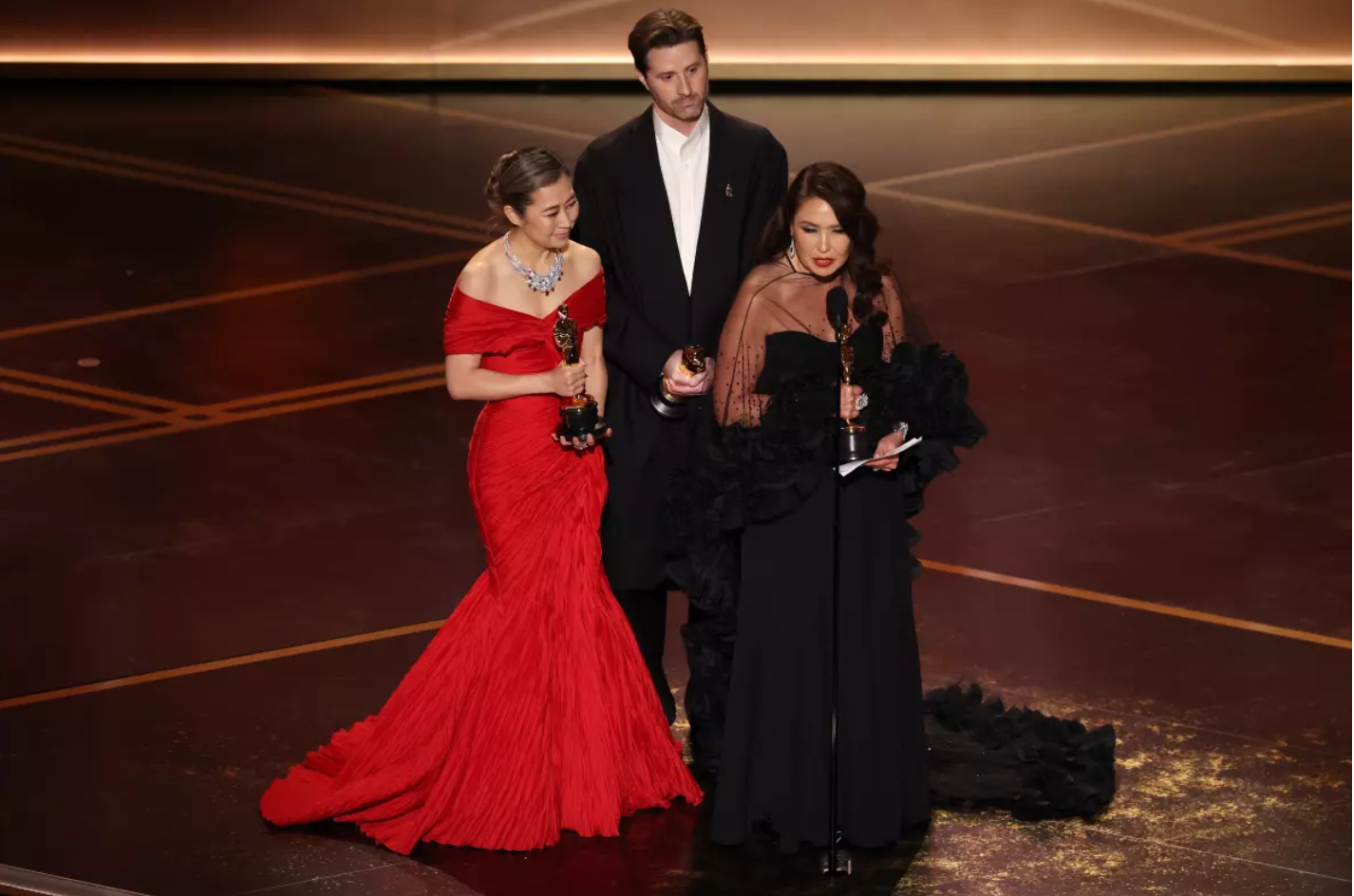 Maggie Kang, Chris Appelhans và Michelle L.M. Wong trong lễ trao giải Oscar lần thứ 98 - Ảnh: Robert Gauthier/Thời báo Los Angeles