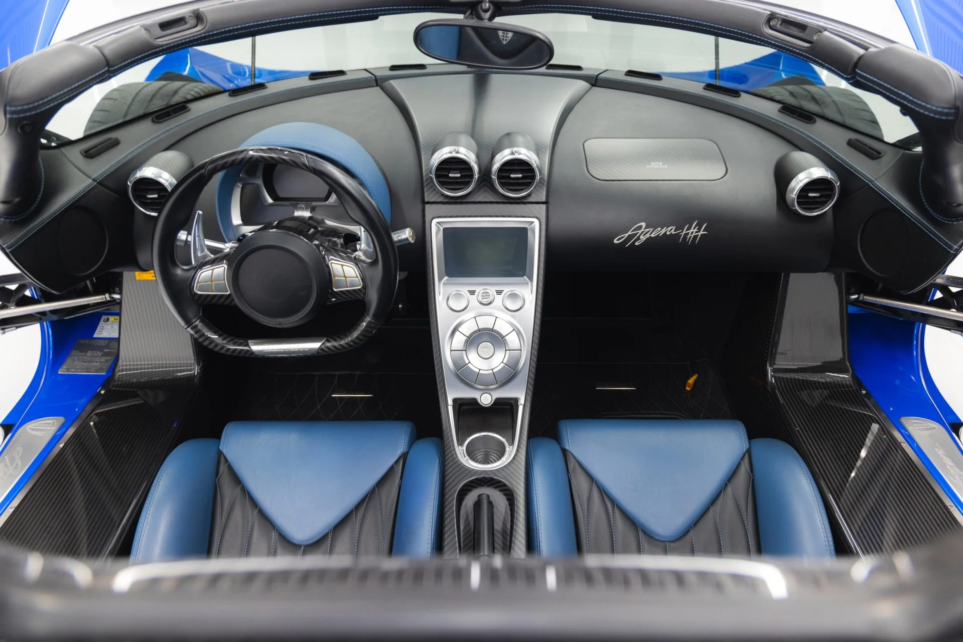 Nội thất của chiếc Koenigsegg Agera HH vẫn giữ nguyên trạng kể từ lúc xuất xưởng. Logo Agera HH được đặt ở bảng taplo ghế phụ, mang tên người chủ đầu tiên.