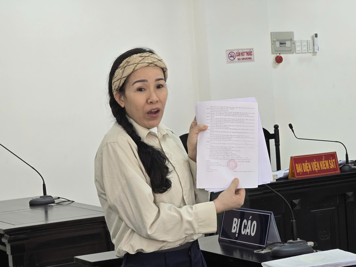 Sau khi hội ý, HĐXX quyết định tiếp tục phiên tòa, không chấp nhận yêu cầu của bị cáo Đinh Thị Lan.