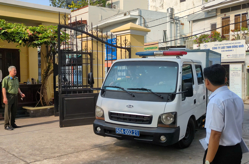 Xe chở bị cáo Đinh Thị Lan tới tòa. Ảnh: TP