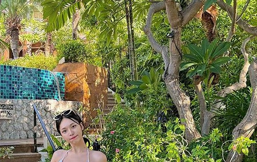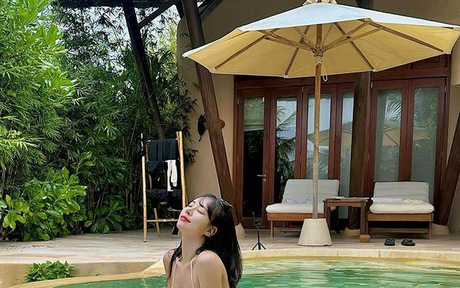 Cô thường xuất hiện tại các resort sang trọng, khoe vẻ đẹp rạng ngời và gu thời trang tinh tế.